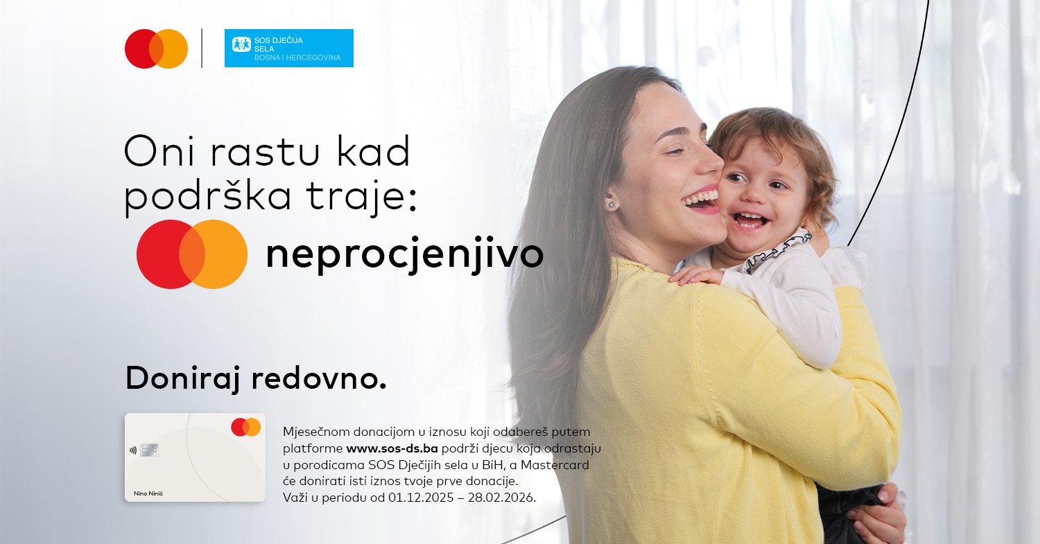 Mastercard je dugogodišnji partner SOS Dječijih sela u BiH i njihovo opredjeljenje počiva na uvjerenju da uporna, stabilna podrška može mijenjati živote. Moć modernih digitalnih plaćanja najvrjednija je onda kada ljudima olakša da čine dobro: jednostavno, sigurno i redovno. Kampanja ima za cilj osnažiti građane da postanu dio šire zajednice koja stoji uz djecu, jer kada se dobra djela udruže, rezultat je zaista neprocjenjiv.
